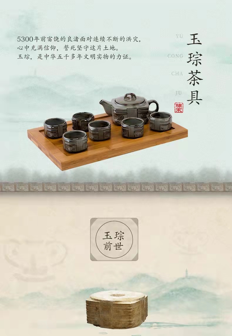 千峰翠6头深空灰玉琮茶具