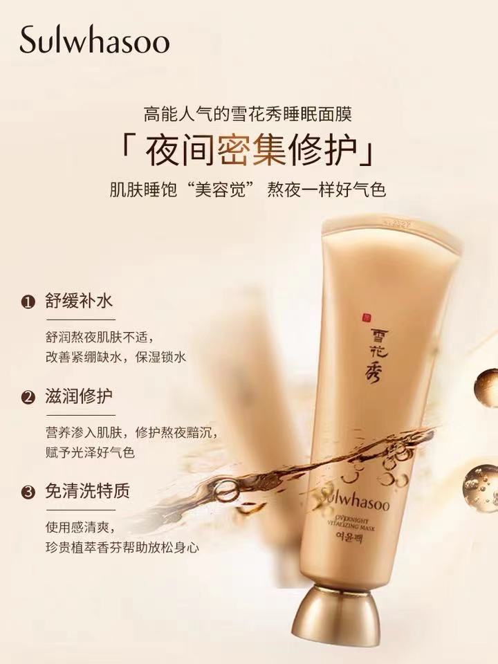 雪花秀与润夜间修护面膜(赠送50毫升*2,赠送35毫升*3 送的比买的多)