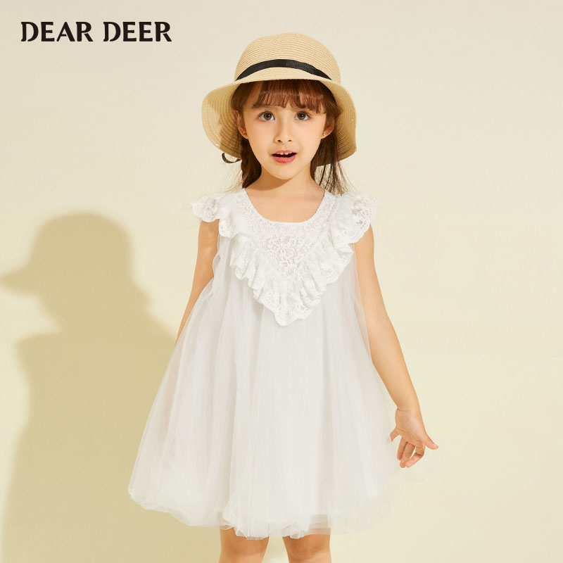 迪迪鹿迪迪鹿2020女小童净色纯白连衣裙