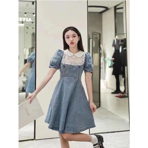 AIVEI2022夏季新品显瘦复古法式气质甜美牛仔连衣裙
