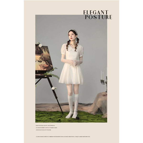 AIVEI2022夏季新品泡泡袖复古宫廷提花高腰连衣裙