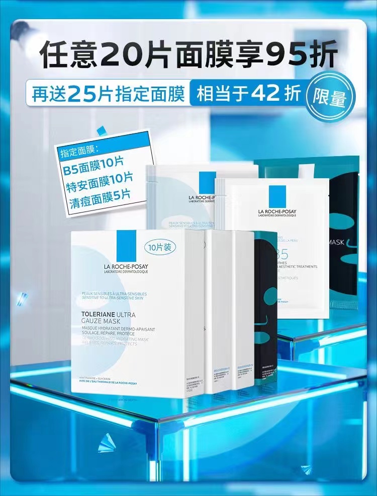 理肤泉B5多效保湿修复面膜*4盒(买20享25)