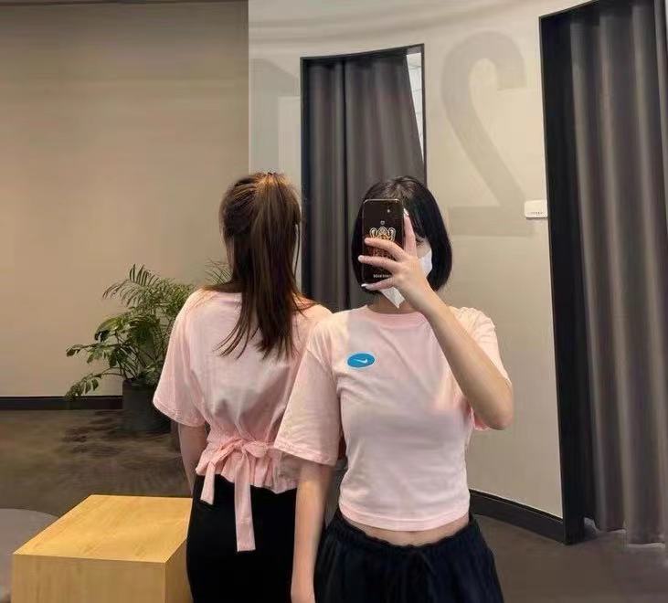 耐克Nike 女子夏季新款短款高腰露脐系带休闲短袖T恤