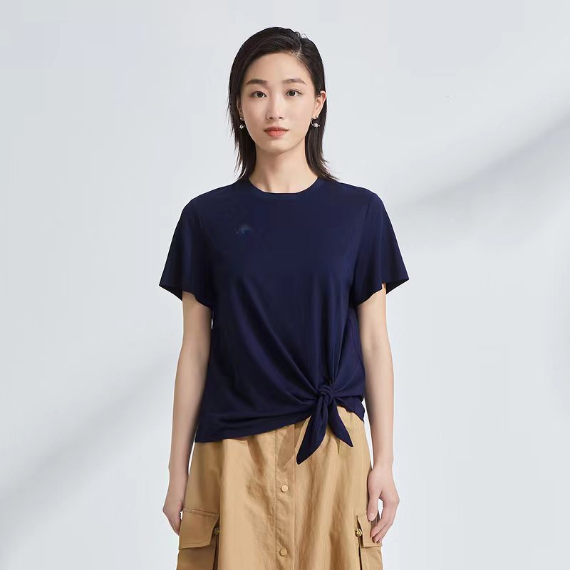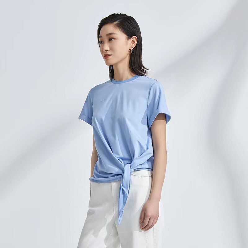 OTT服饰OTT2021夏圆领系带打结T恤
