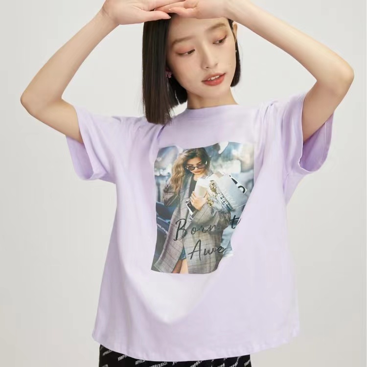 VEROMODA夏季新款字母闪粉宽松纯棉T恤