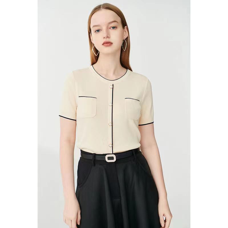 诗篇夏季时尚简约天丝麻毛花纹短袖针织衫
