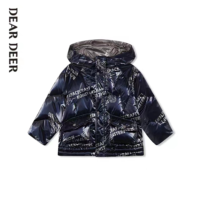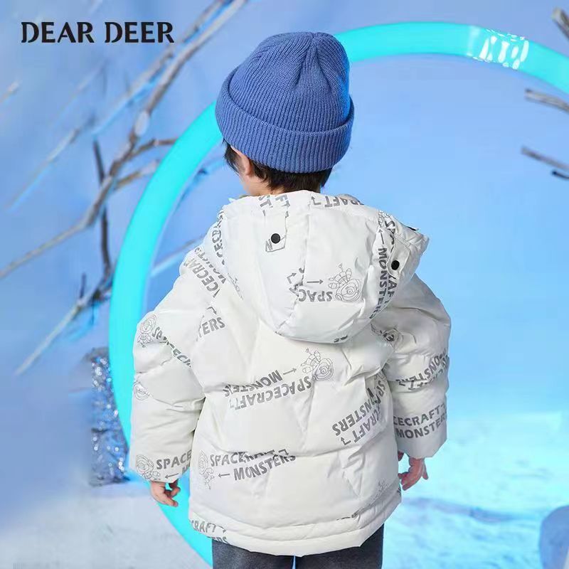 迪迪鹿印花连帽羽绒服