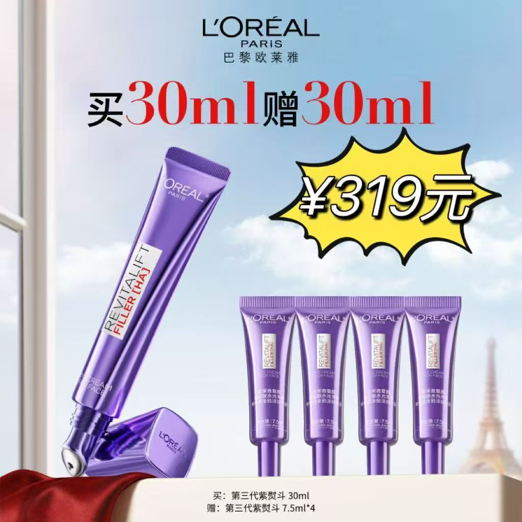 欧莱雅复颜玻尿酸水光充盈全脸淡30ml(到手60ml)