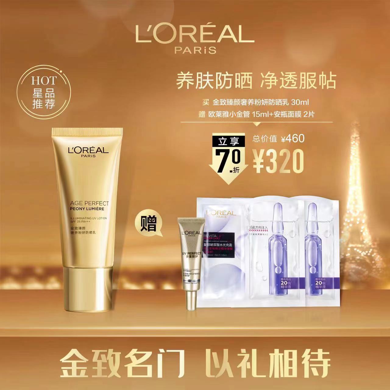欧莱雅金致臻颜奢养粉妍防晒乳30ml(约5折) 返回首页 返回商品页