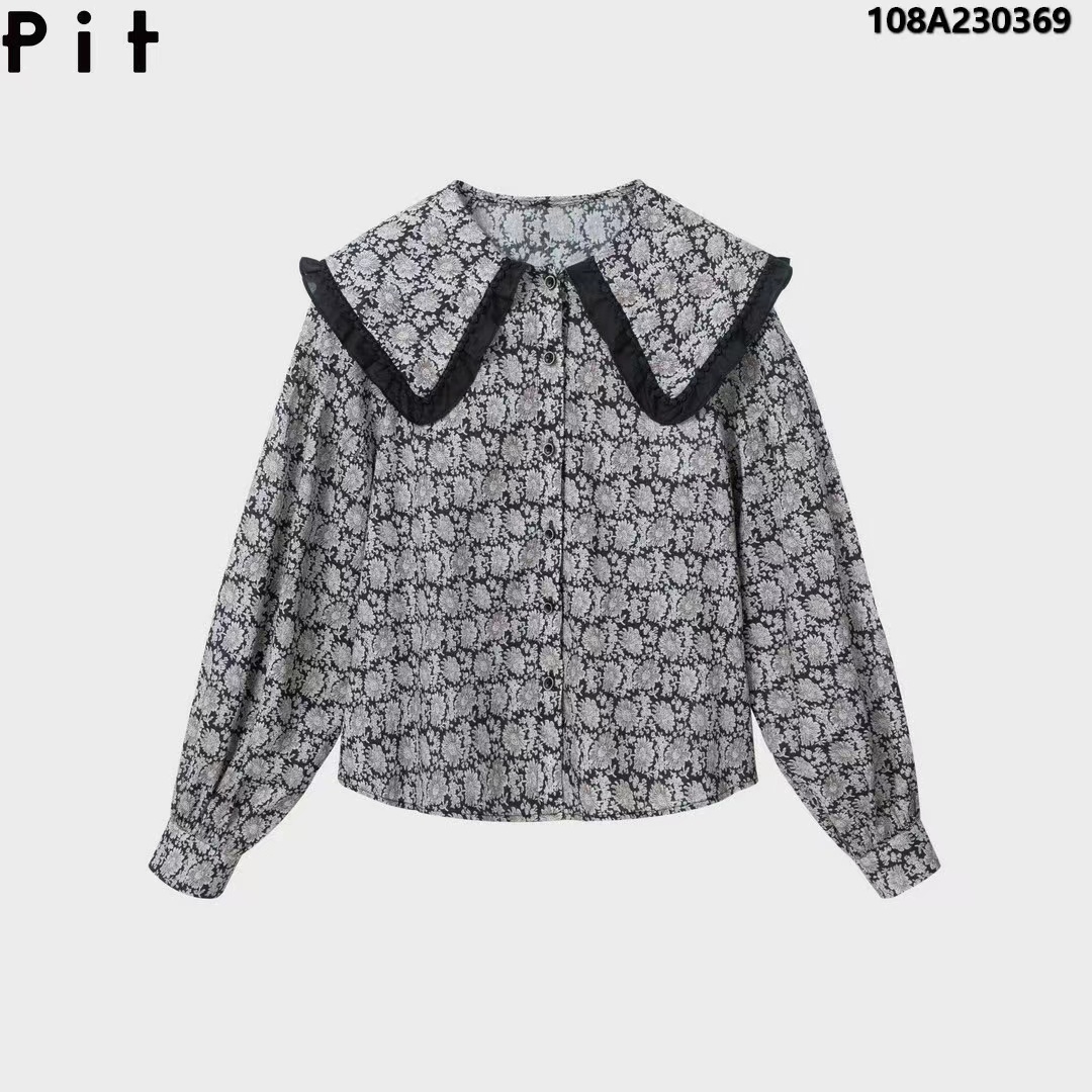 PIT秋季新款娃娃领设计感甜美风宽松长袖