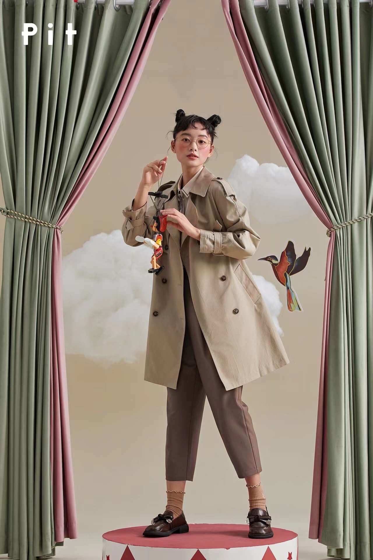 PIT秋装新品宽松风显高显瘦双排扣简约翻领外套