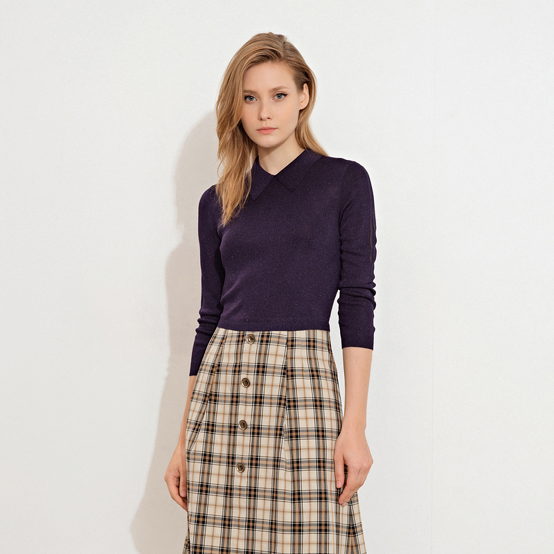 PSALTER诗篇秋季气质优雅时尚拼接连衣裙