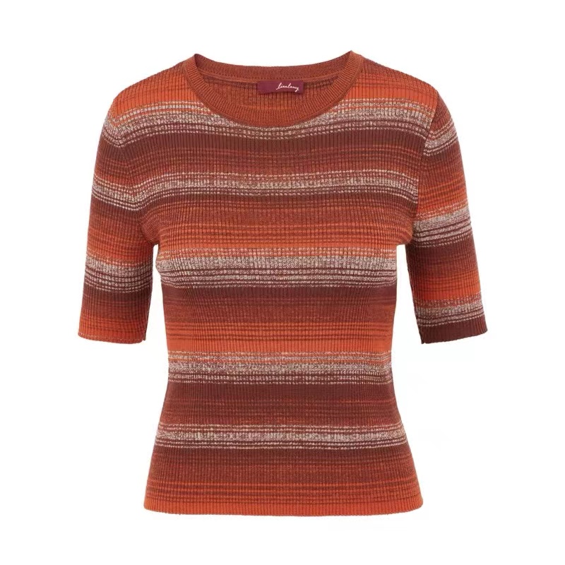LANCY/俪雅朗姿2022秋季新款圆领羊毛针织衫条纹撞色收腰女士毛衣