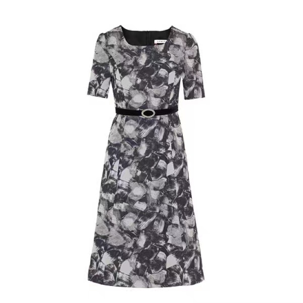 LANCY/朗姿短袖连衣裙子女2022秋季新款印花收腰宴会气质高级裙子