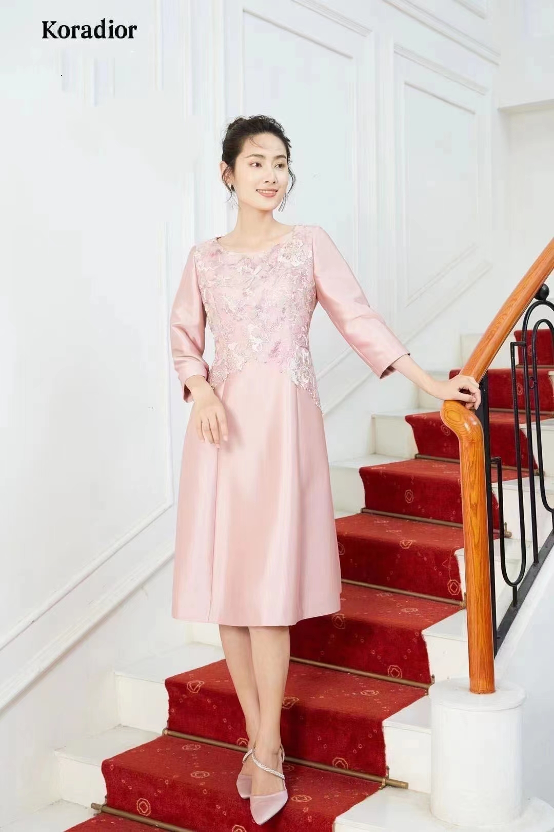 ,珂莱蒂尔 灰红色刺绣礼服裙