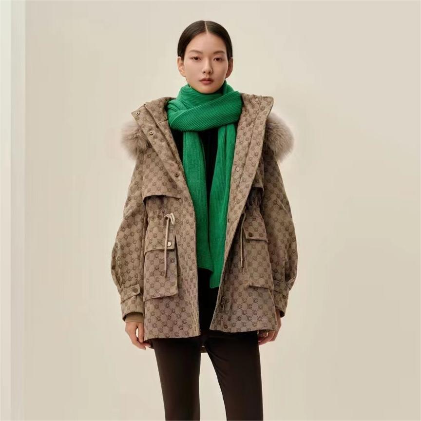 3COLOUR派克羽绒服-狐狸毛领90白鸭绒