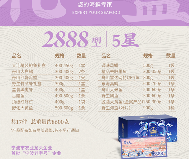 现货4折价,1155元,鱼达人2888元五星海鲜礼包