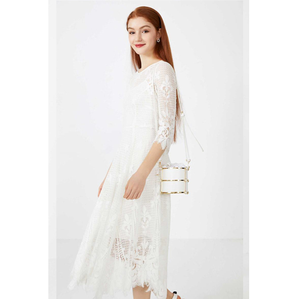 Vero Moda2020春夏新款圆领七分袖蕾丝长裙连衣裙女|32027C513