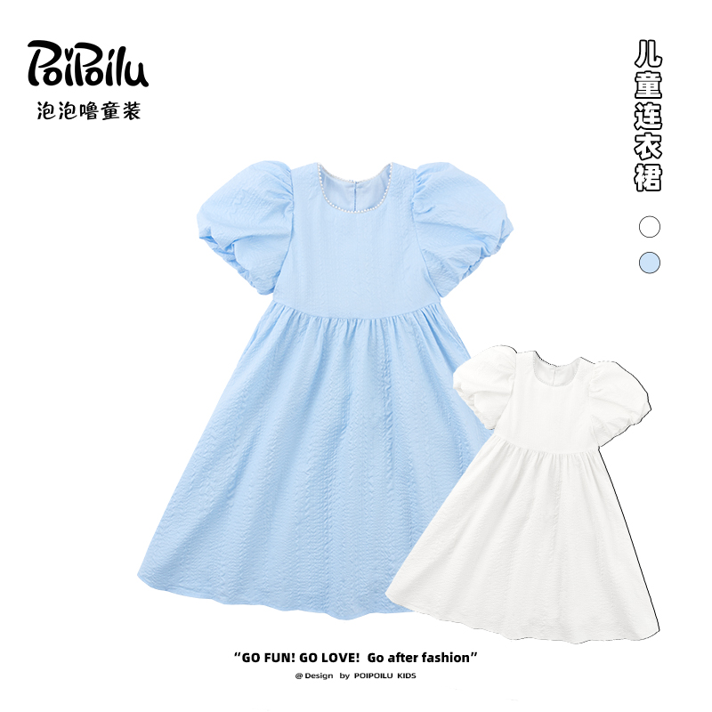 泡泡噜蓝色连衣裙