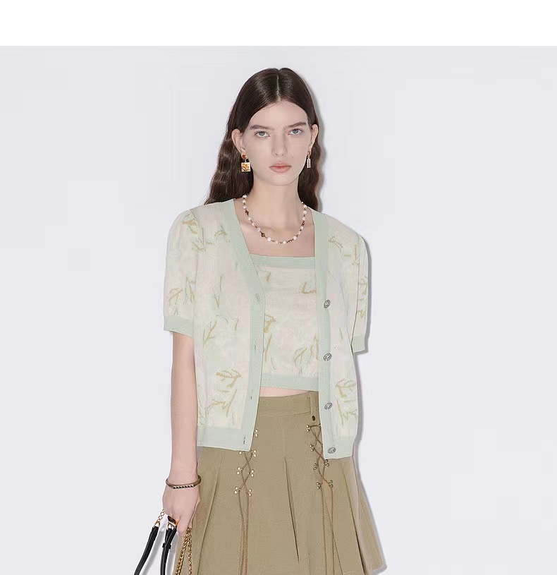 the MSLAN23夏南法花园泡泡袖提花毛织开衫