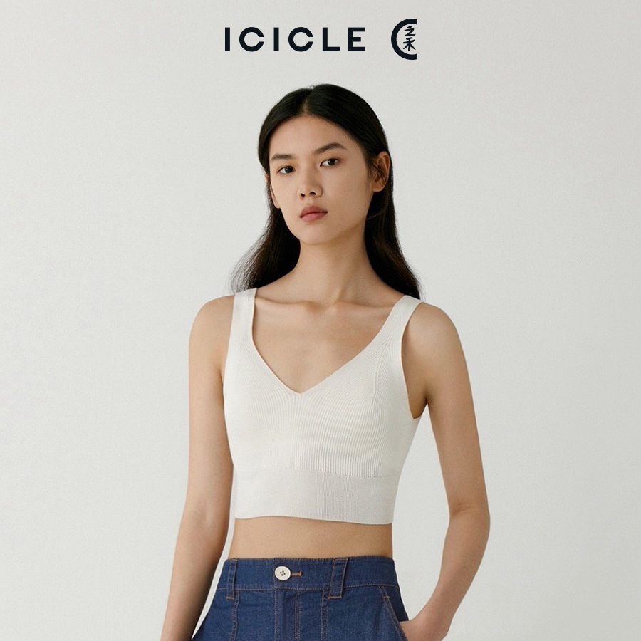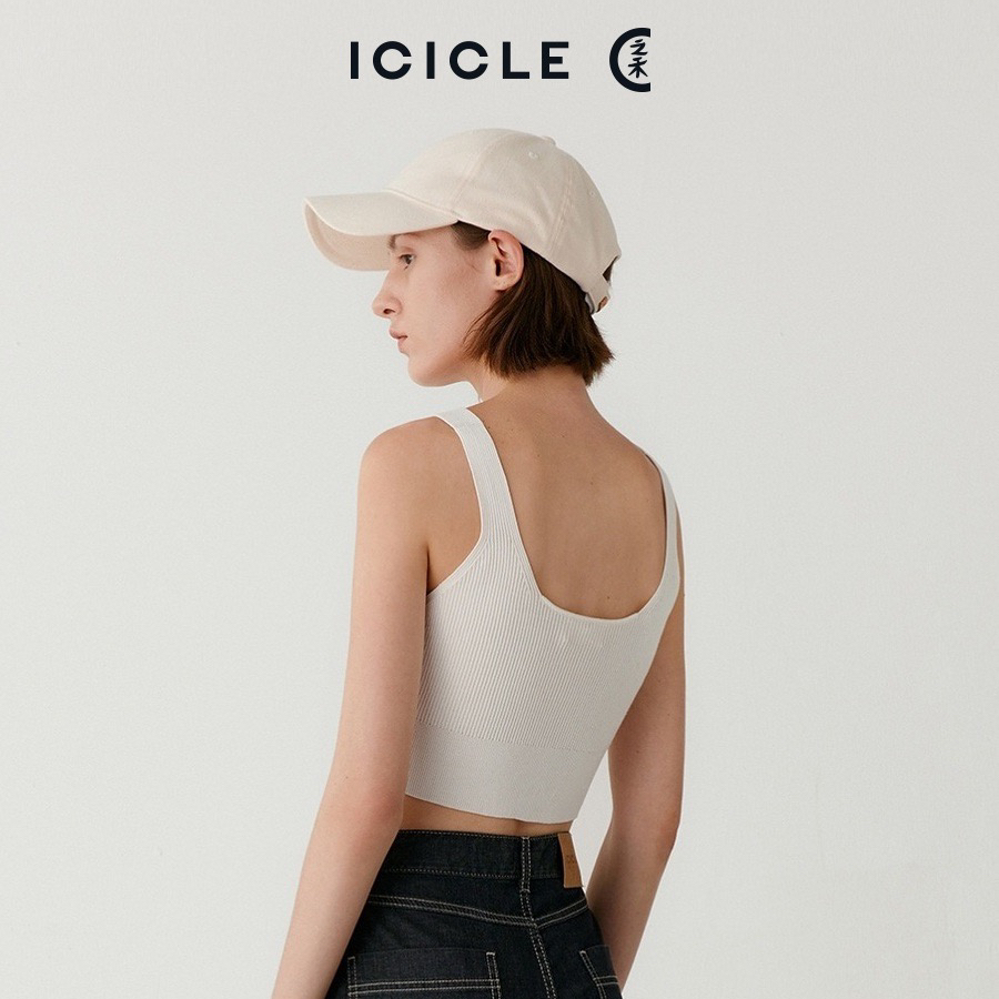 【无缝针织】ICICLE之禾女装2023新款棉弹混纺V领短款背心