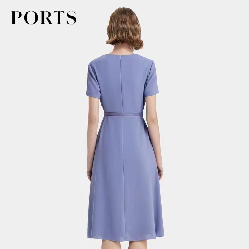 宝姿雾霾蓝紫不规则叠片连衣裙