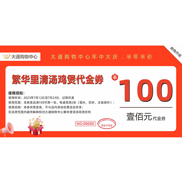 49.9元抢购100元繁华里清汤鸡煲代金券