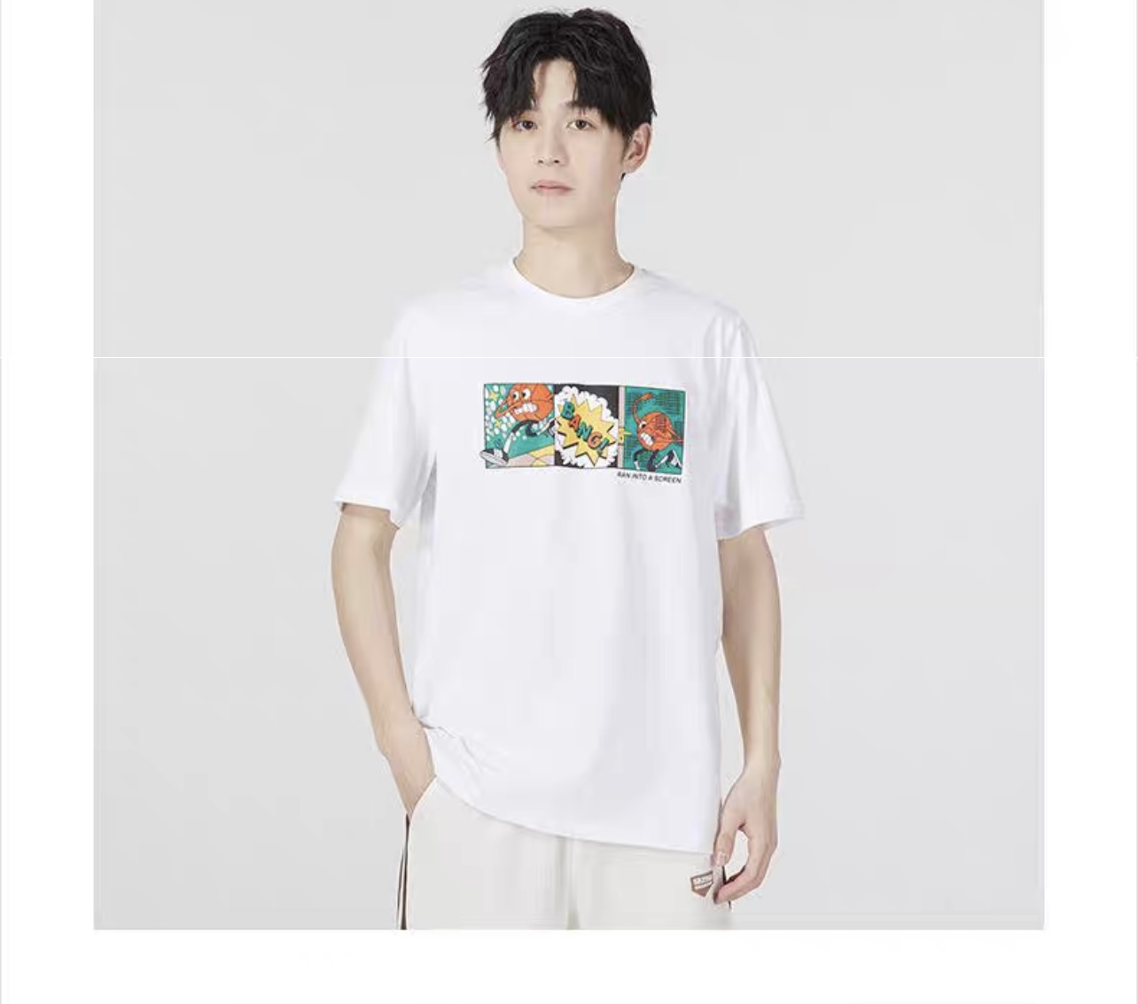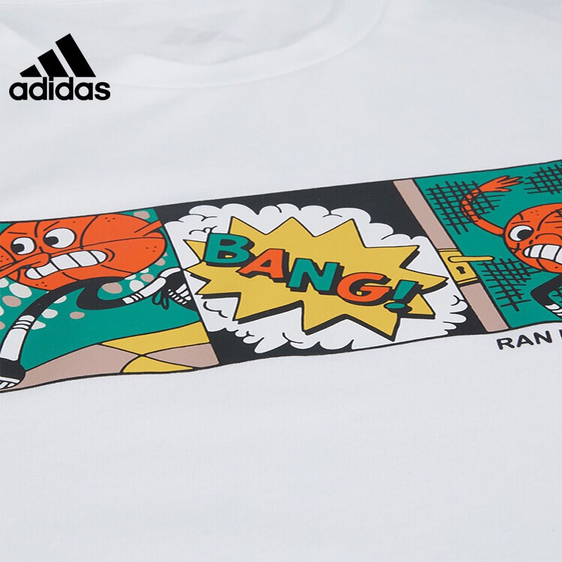 阿迪达斯篮球运动T恤男装2023夏新款卡通印花圆领休闲短袖IC1866
