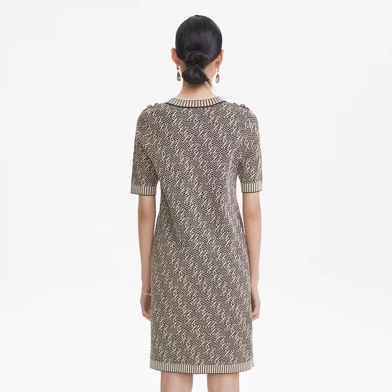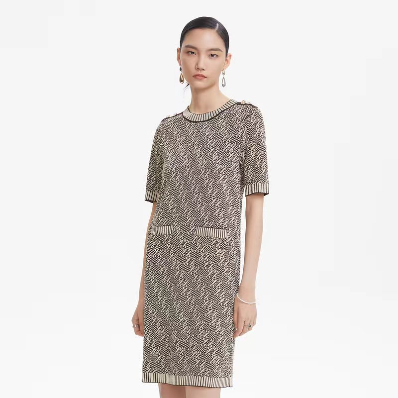 朗姿服饰新款收腰显瘦圆领高级感连衣裙