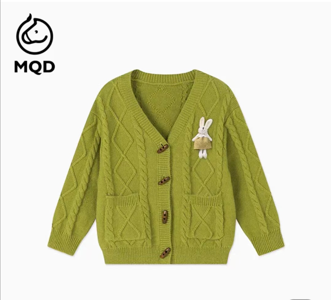 马骑顿女小童秋季清新亮丽立体装饰针织开衫