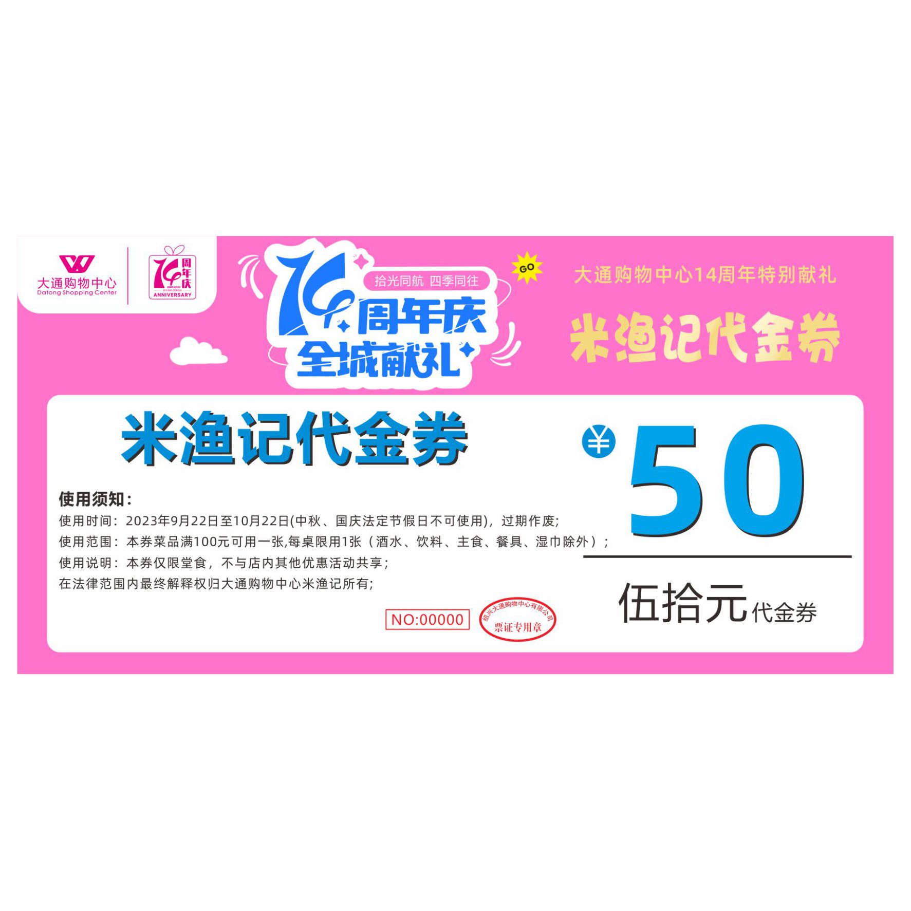 50元米渔记代金券