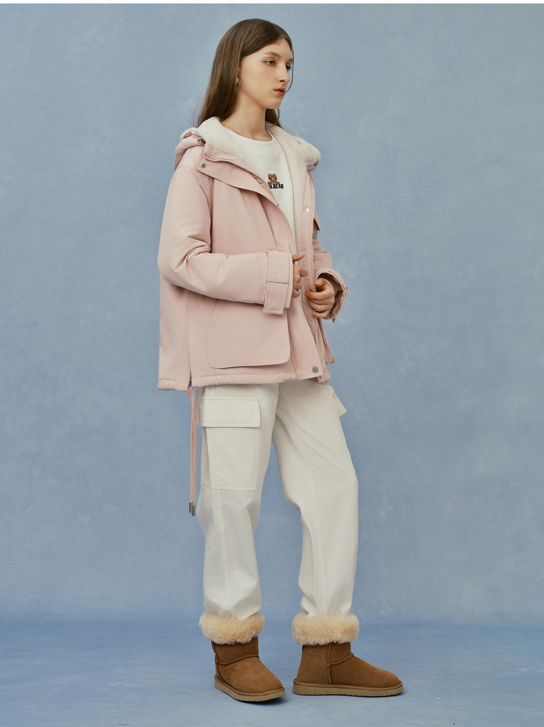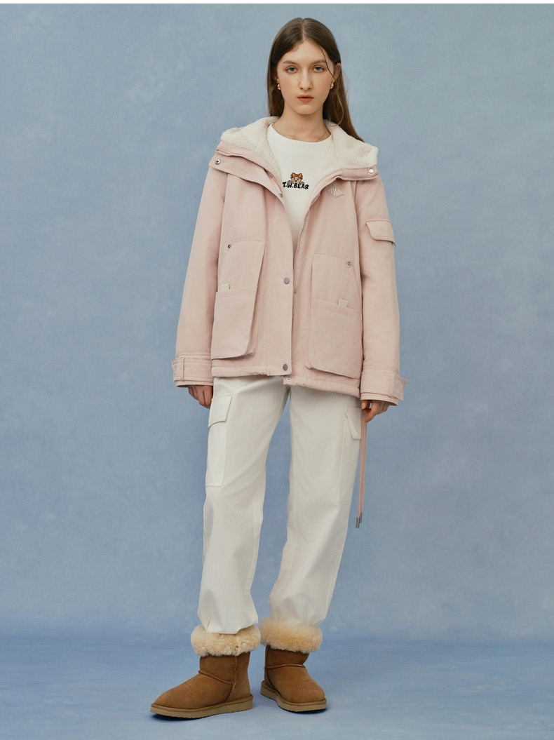 TeenieWeenie小熊2023秋冬新款休闲酷感工装风连帽棉服保暖外套女