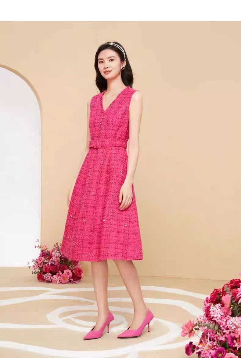 珂莱蒂尔玫瑰色羊毛花纱连衣裙