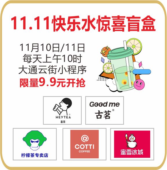 11.11快乐水惊喜盲盒(喜茶/古茗/嘢打柠/库迪/蜜雪冰城)