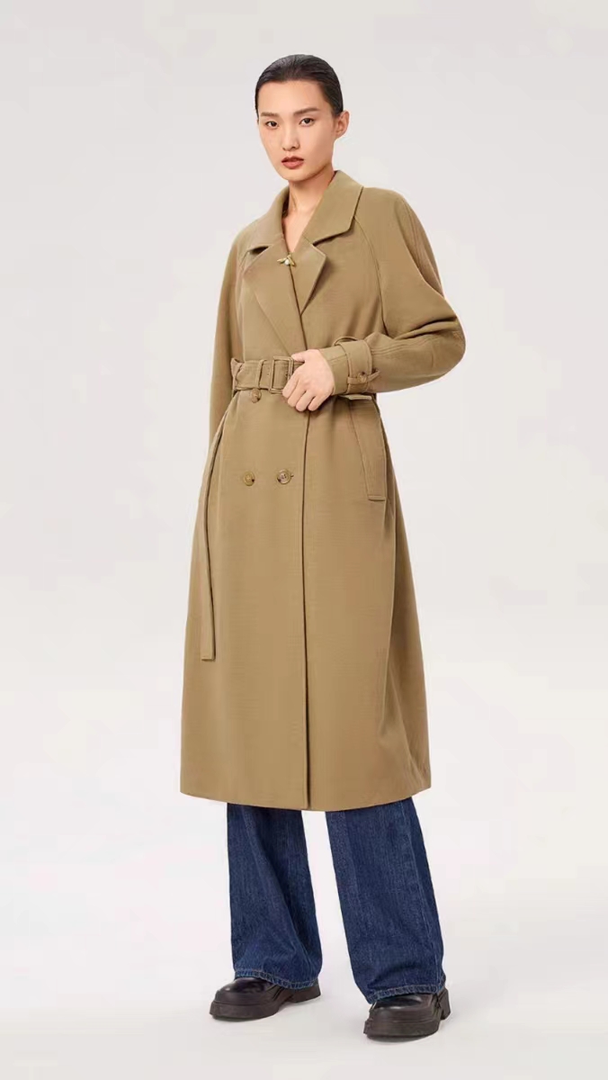OVV秋冬羊毛平驳领腰带款休闲大衣