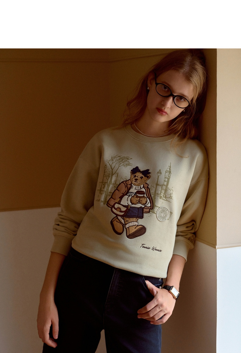 TeenieWeenie小熊冬季圆领加绒加厚保暖短款卫衣宽松时尚女小个子