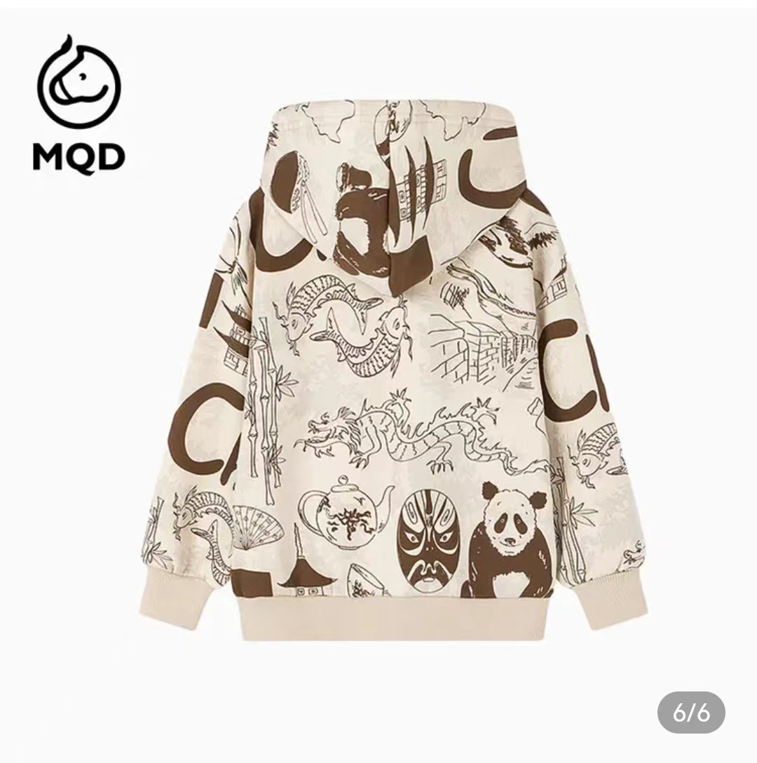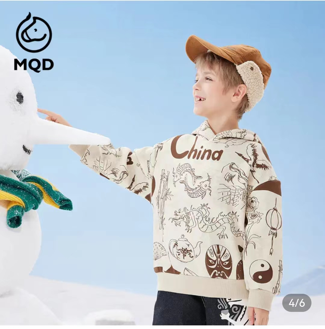 马骑顿MQD男童冬季国潮满版印花加绒连帽卫衣