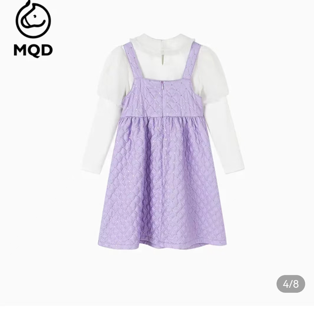 马骑顿MQD女童冬季时尚甜美泡泡袖连衣裙套装