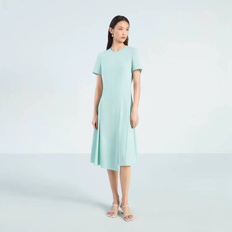 OVV春夏热卖女装单面缎三醋酸圆领经典不对称A字短袖连衣裙
