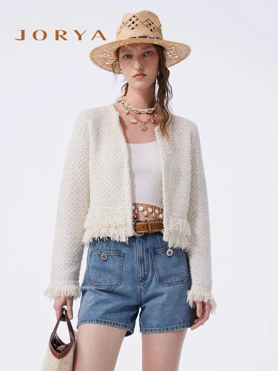 JORYA2024新款流苏底摆小香风针织开衫女