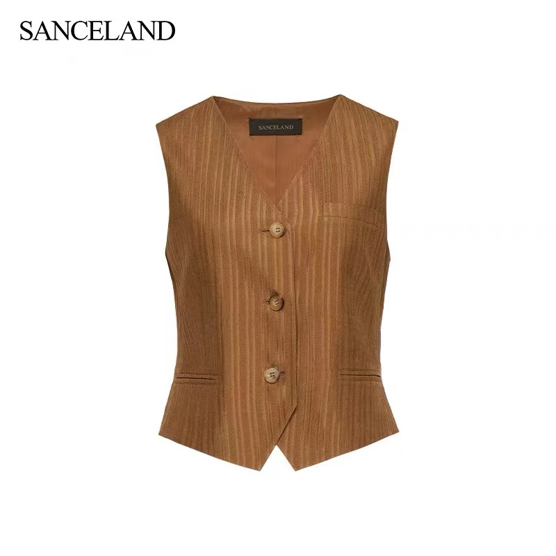 三石一澜夏桑叠绉真丝马甲×短款V领马甲外套SI25401120