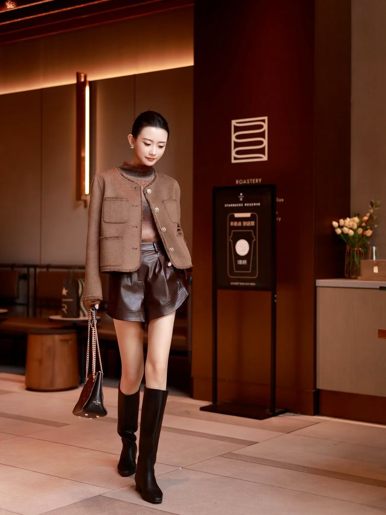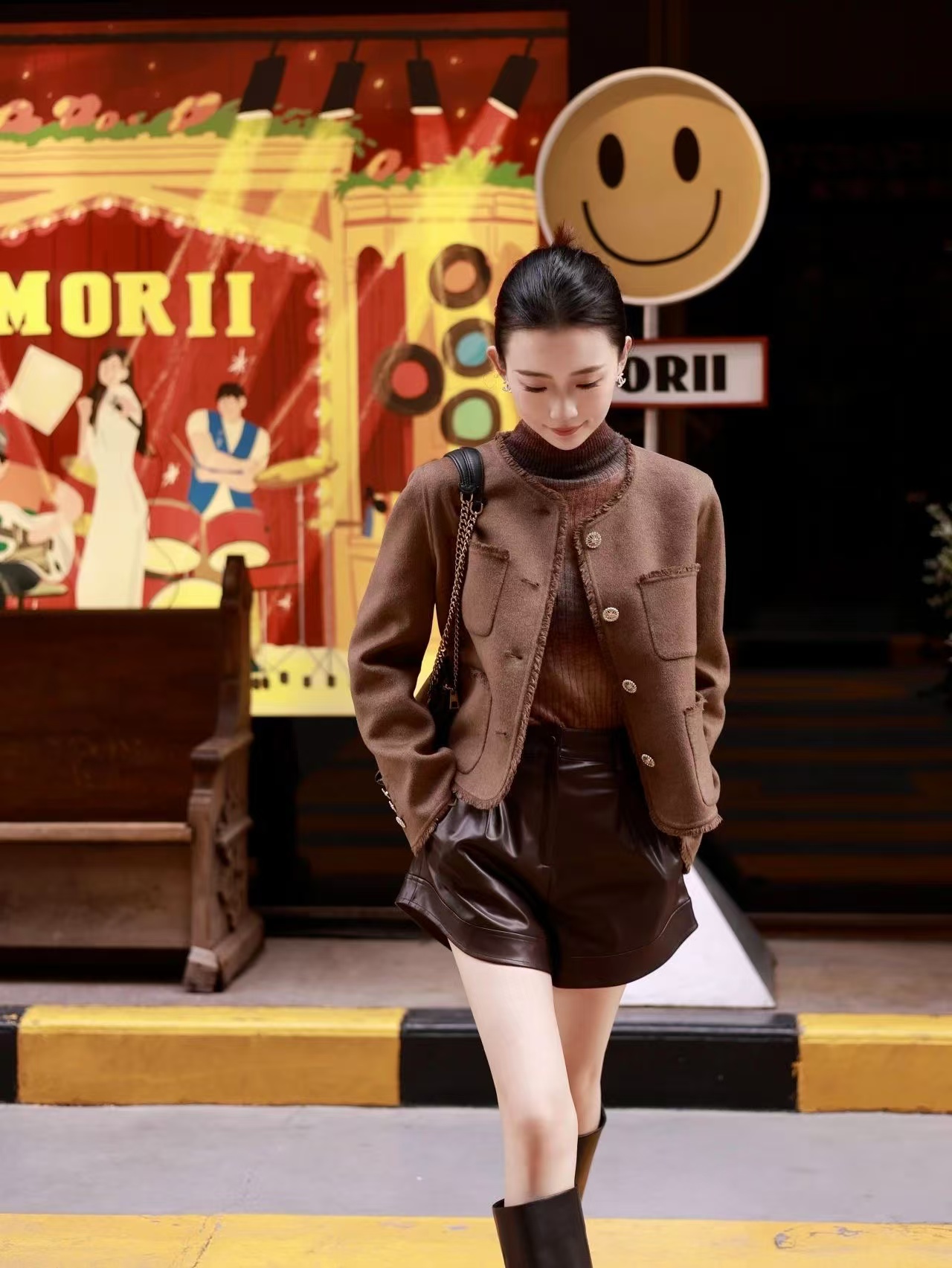Re-BLUE(摩卡棕色蛋白皮短裤)