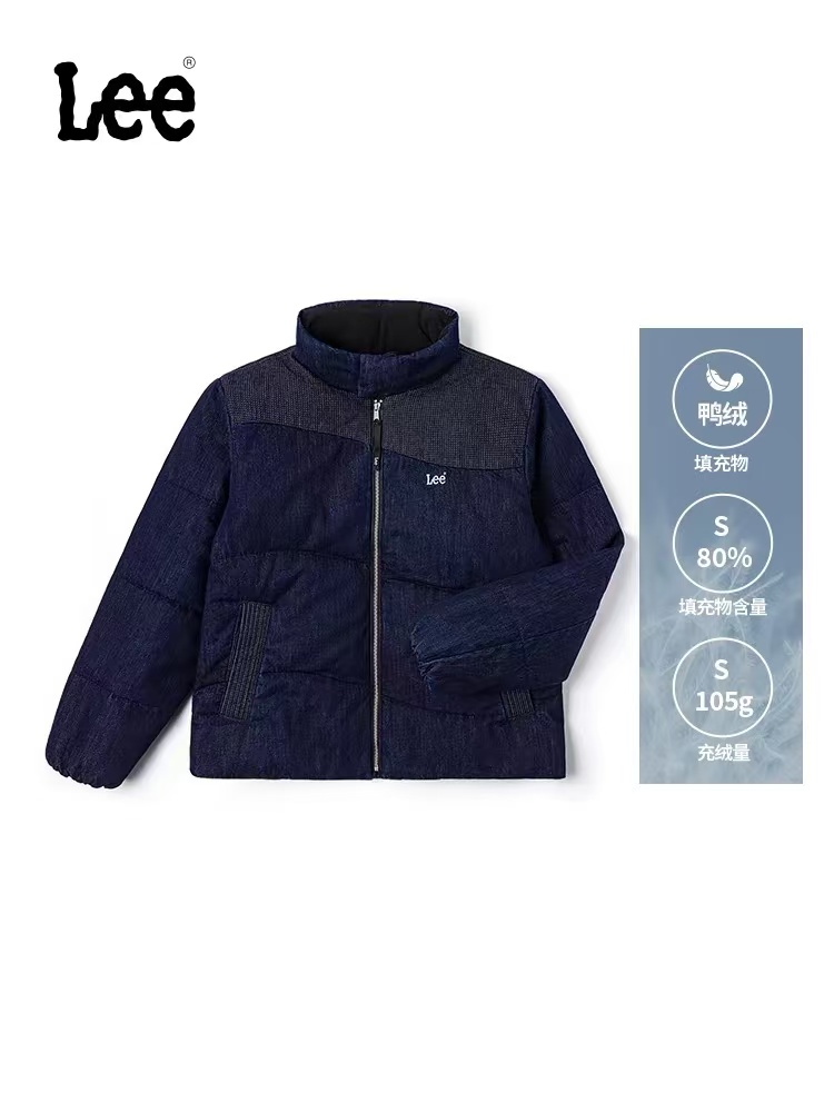 lee商城同款24秋冬新品舒适版刺绣LOGO立领羽绒夹克