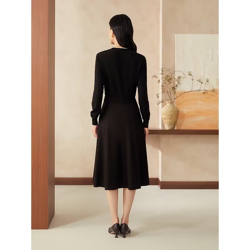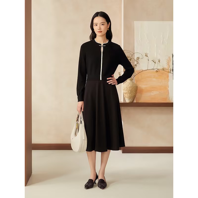 【美丽诺羊毛】YINER音儿2025春季新款新中式假两件醋酸连衣裙