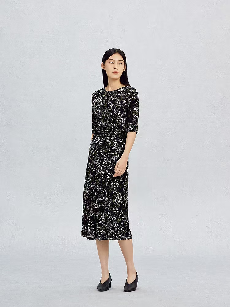 鄂尔多斯1980女弹力印花围裹式连衣裙