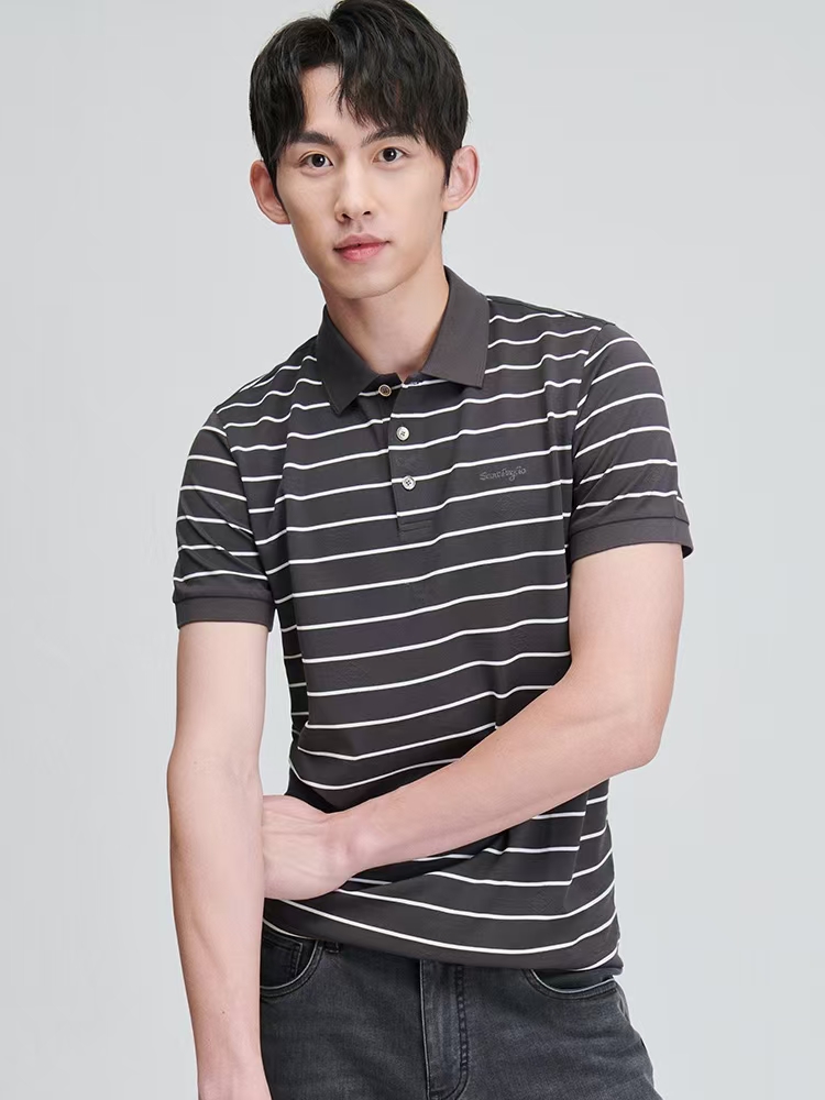 报喜鸟男士商务休闲都是翻领条纹POLO衫