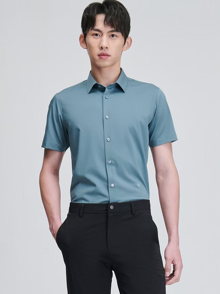 报喜鸟商务男士纯色绿色短袖衬衫ECC242207U