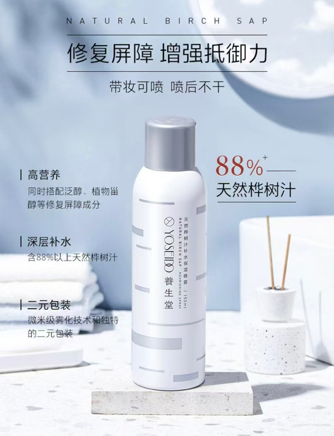 OUTCOS养生堂天然桦树汁补水保湿喷雾300ml送50ml*3面膜1片(柜台自提)