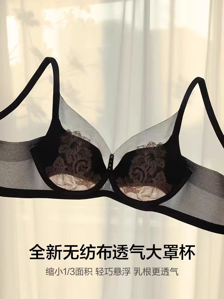 爱慕流金系列内衣女25夏季薄款3/4软钢圈深v无纺布大胸显小文胸