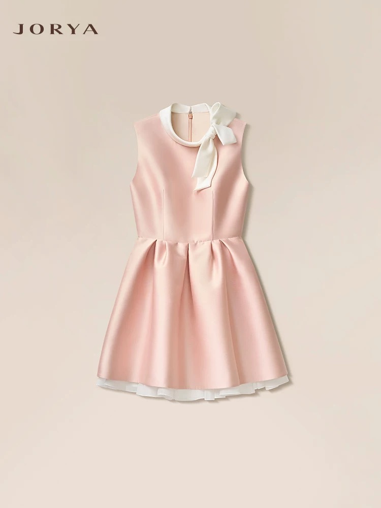 JORYA 25早秋新款粉色赫本风蝴蝶结连衣裙